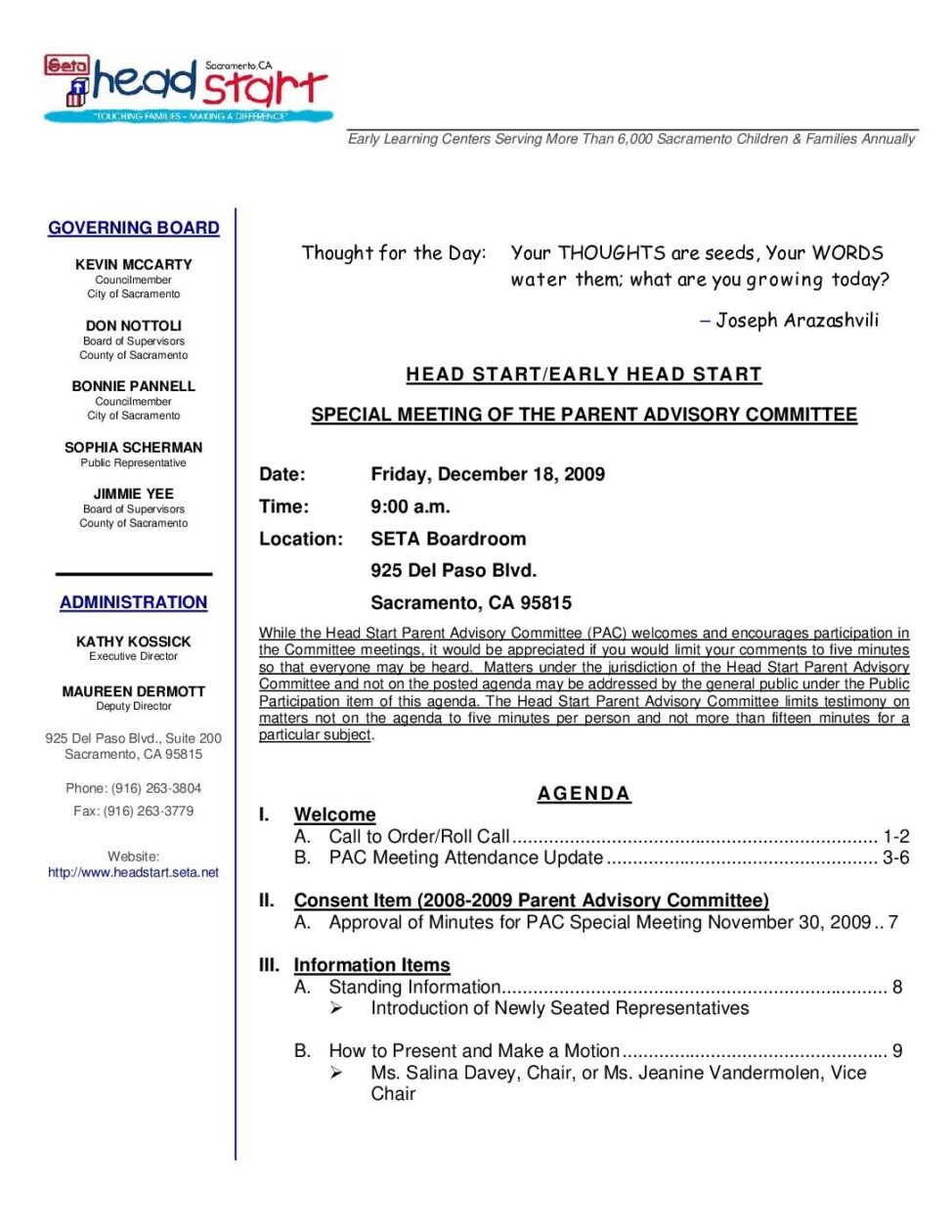 Head Start Parent Advisory Committee