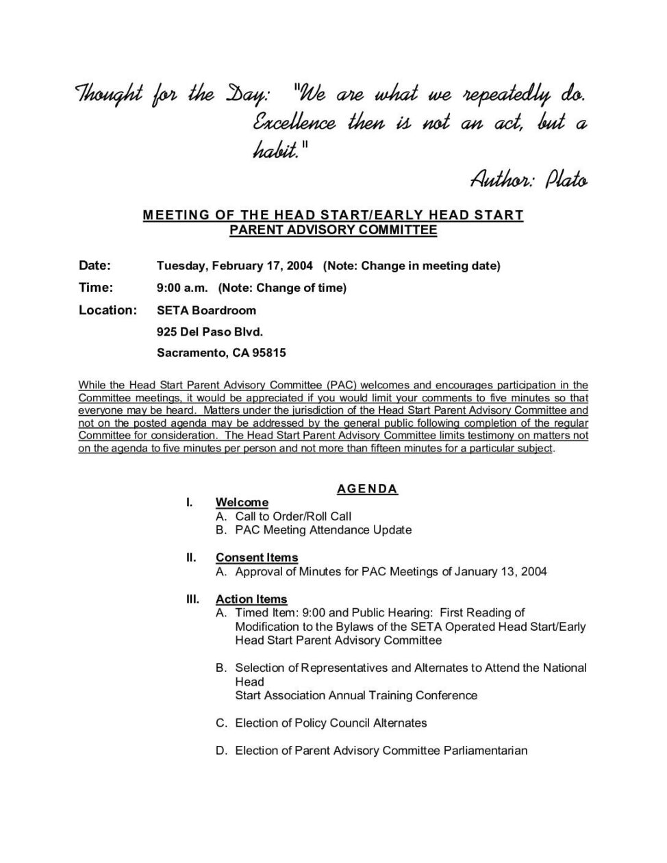Head Start Parent Advisory Committee