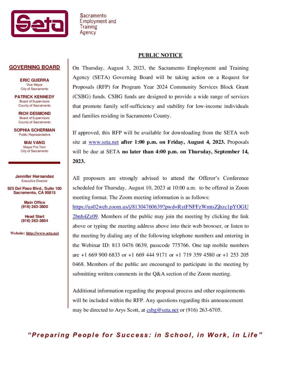 CSBG 2024 Public Notice of RFP