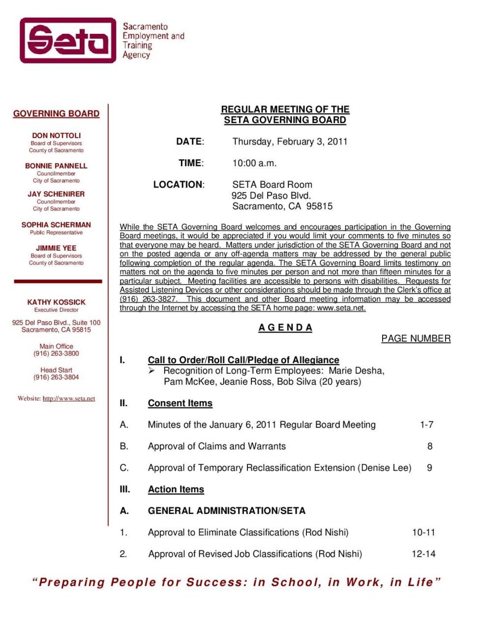 Governing Board Regular Meeting 2/3/11