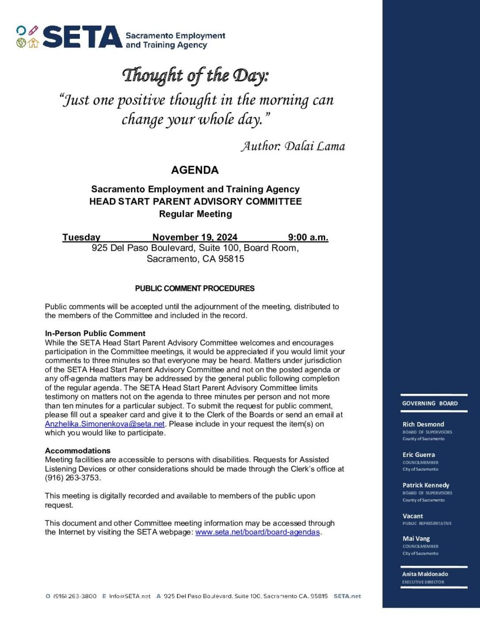 Head Start/Early Head Start Parent Advisory Committee 11/19/2024