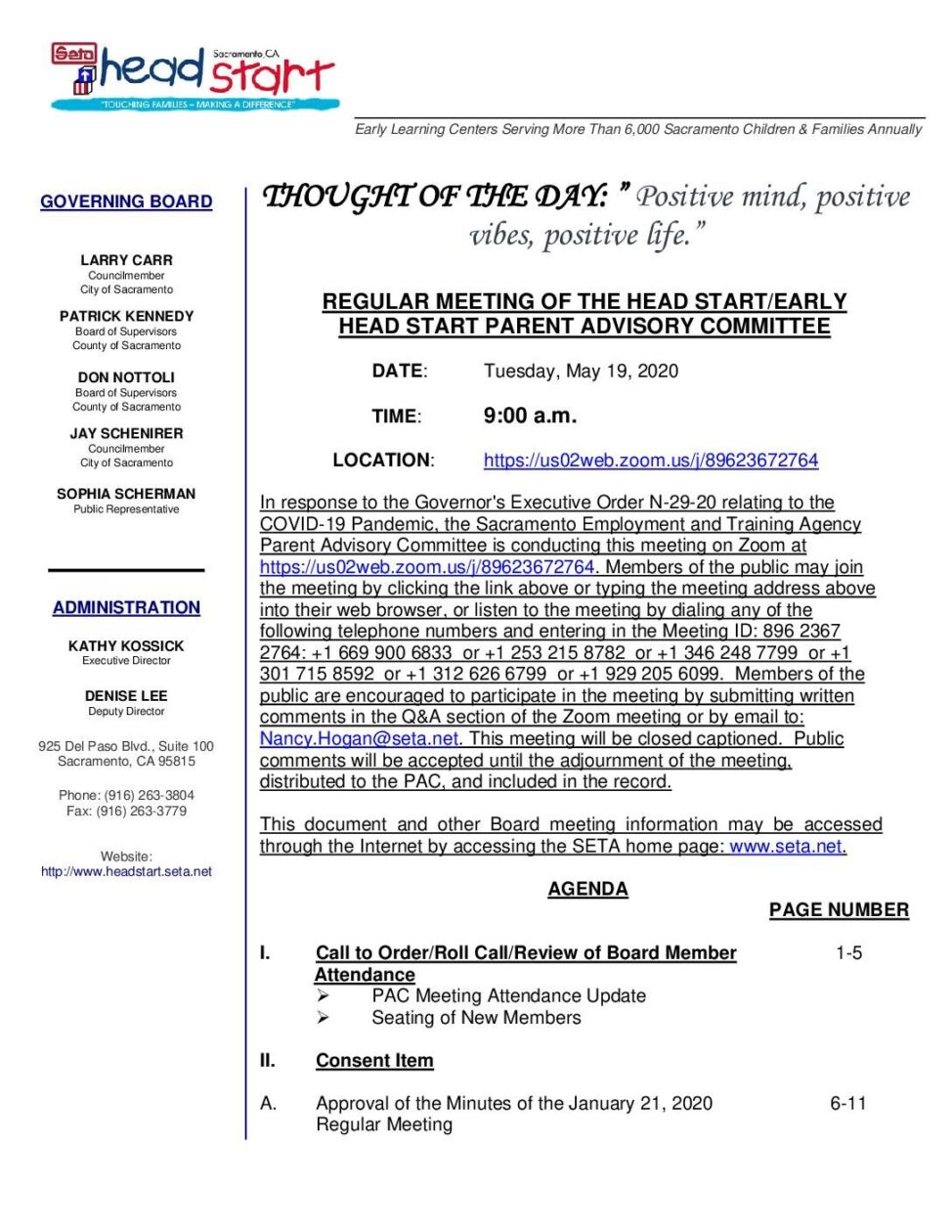 Head Start/Early Head Start Parent Advisory Committee 5/19/2020