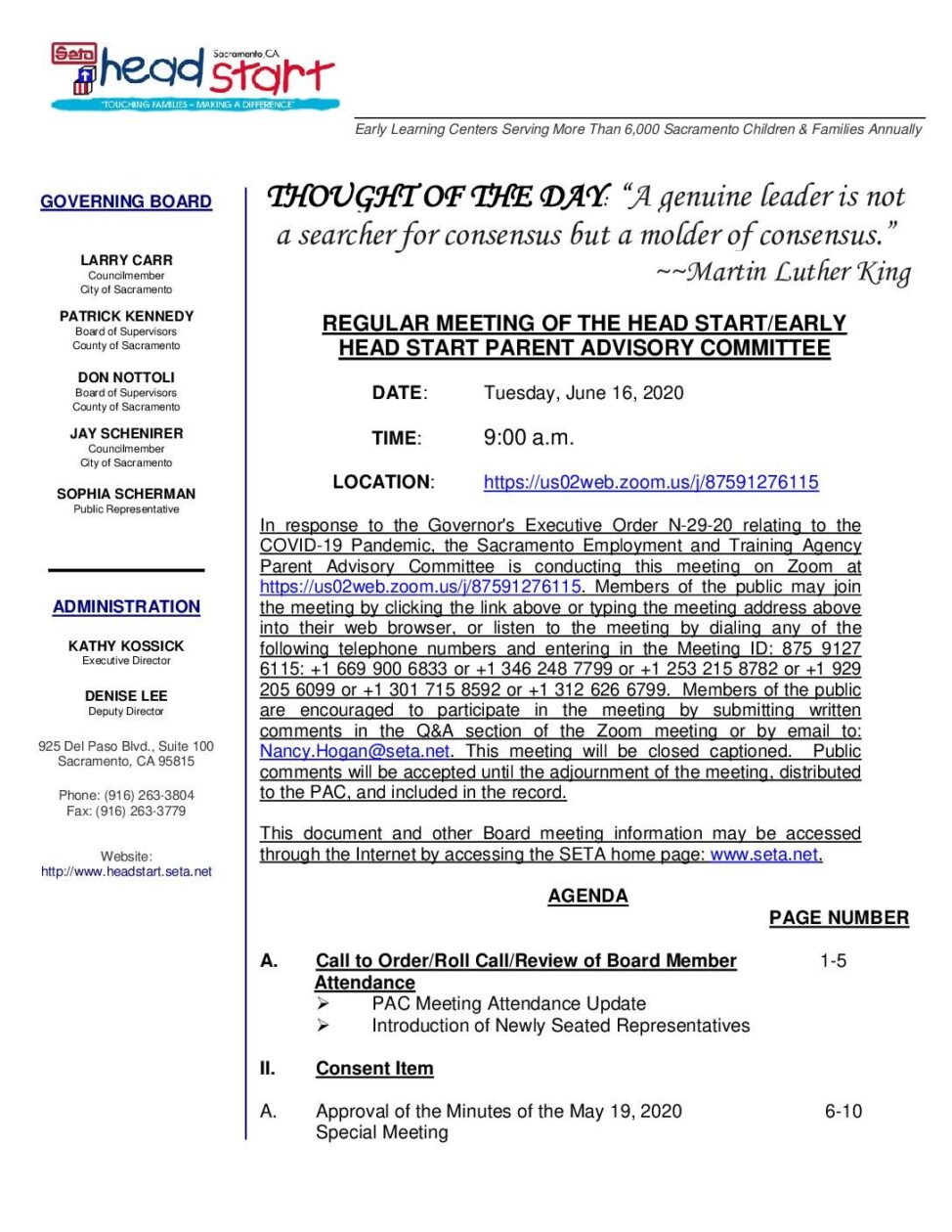 Head Start/Early Head Start Parent Advisory Committee 6/16/2020
