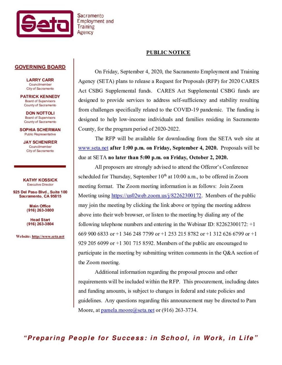 Public Notice/2020 CARES Act Supplemental CSBG Funds RFP