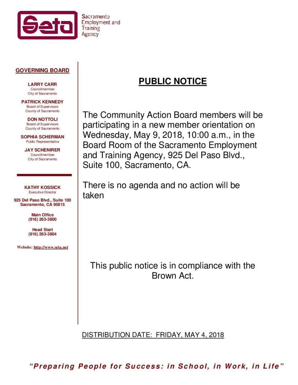 Public Notice of New Member Orientation