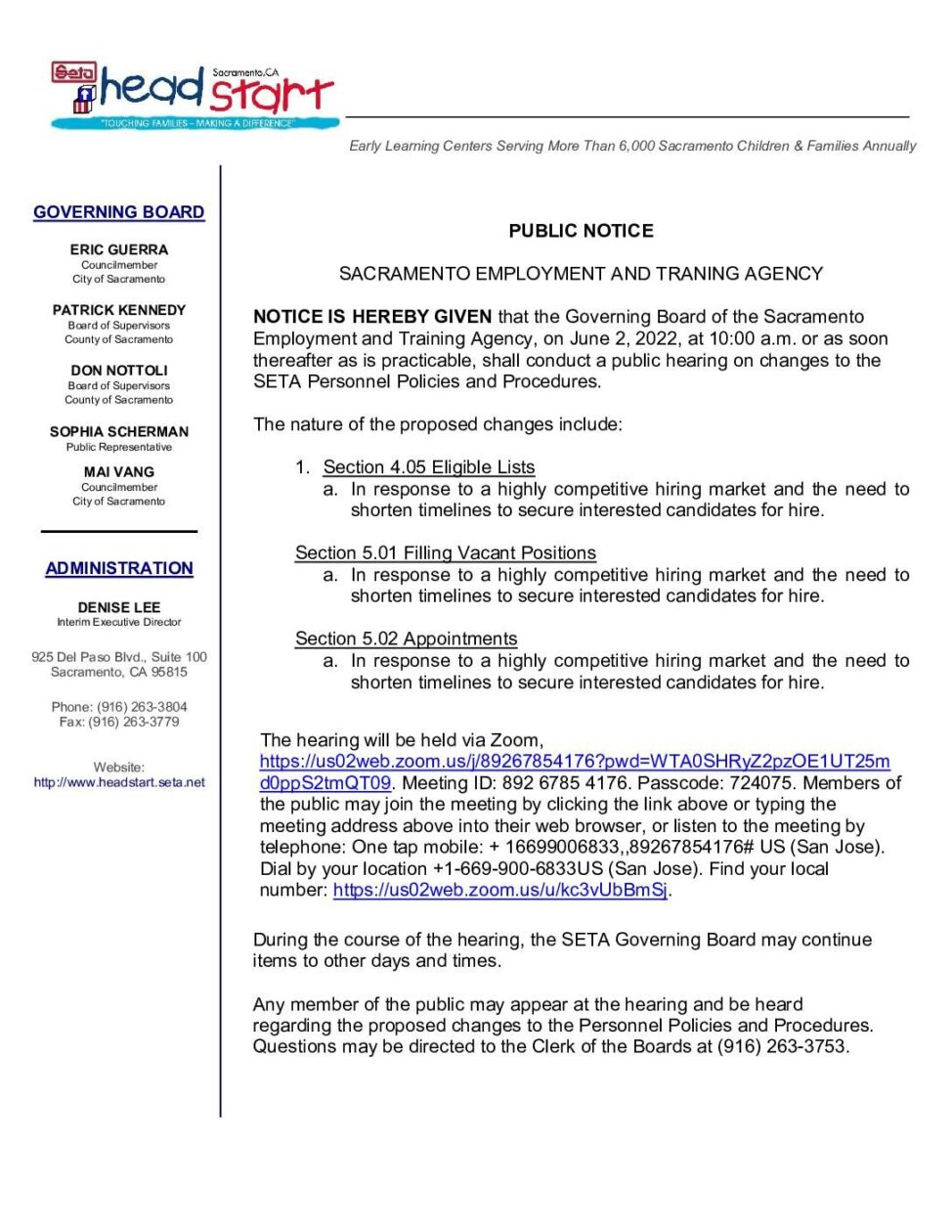 Public Notice on Changes to Personnel Policies and Procedures
