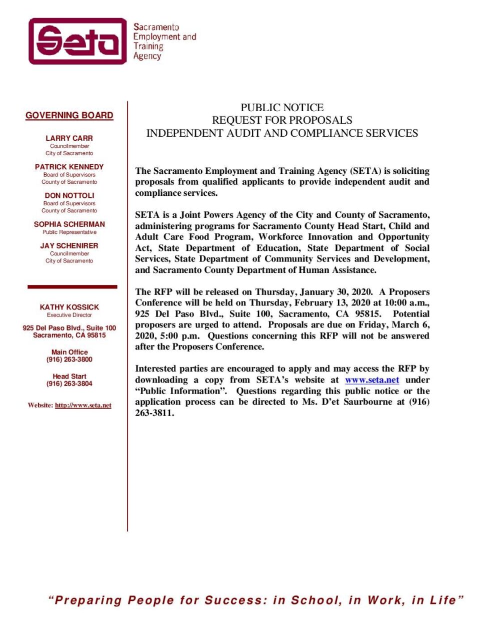 PUBLIC NOTICE – SETA 2020 Audit RFP