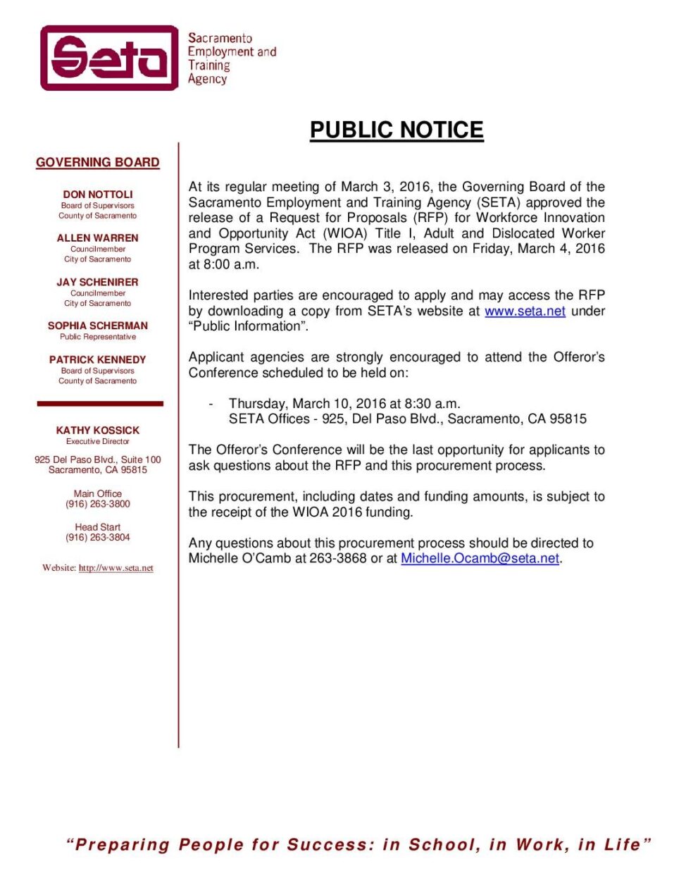 Public Notice – WIOA Adult/DW Services RFP 2016