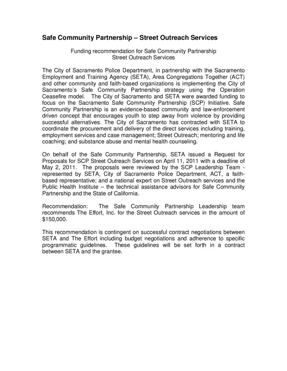 Recommendation for Street Outreach Services – Spring 2011 – Public Notice