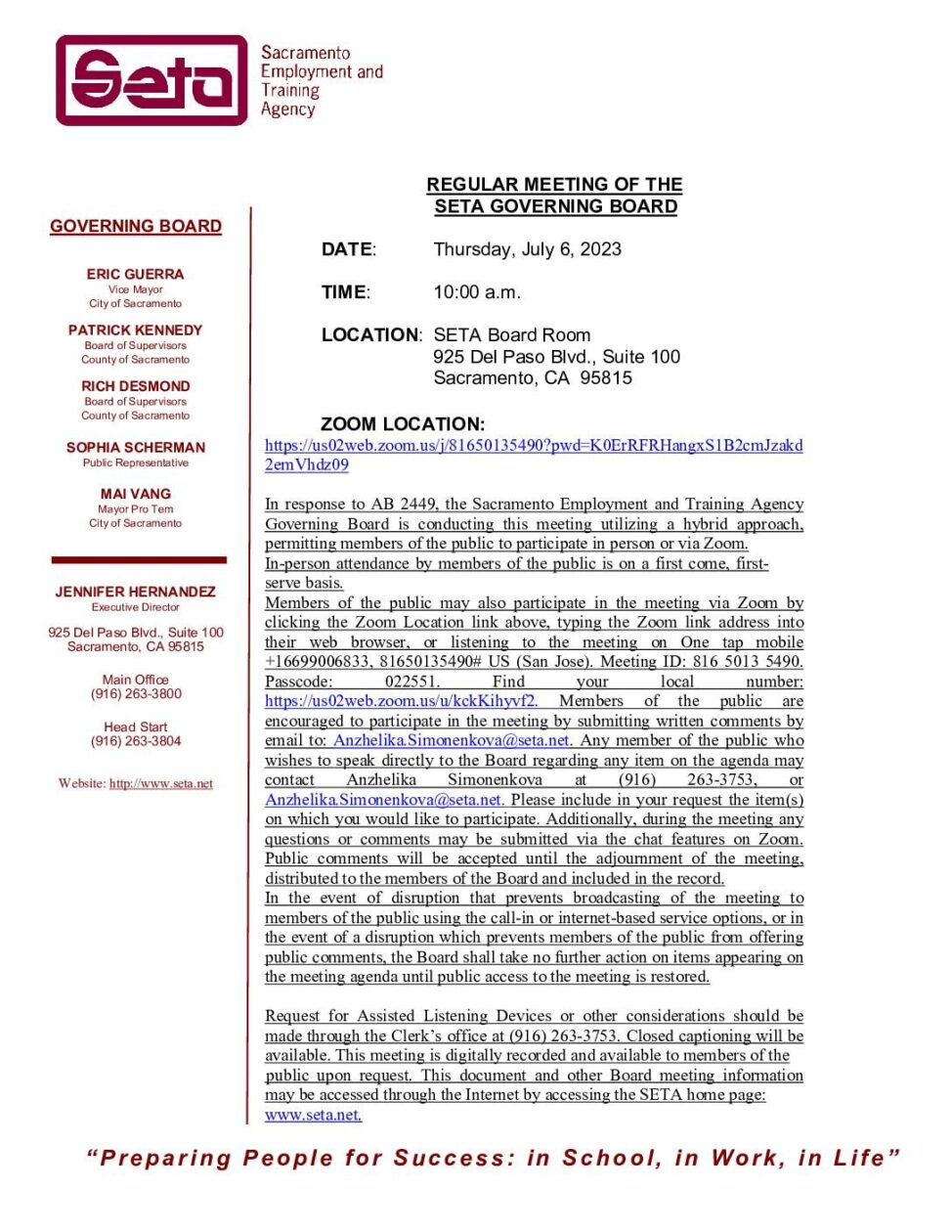 Regular Meeting of the SETA Governing Board 07/06/2023