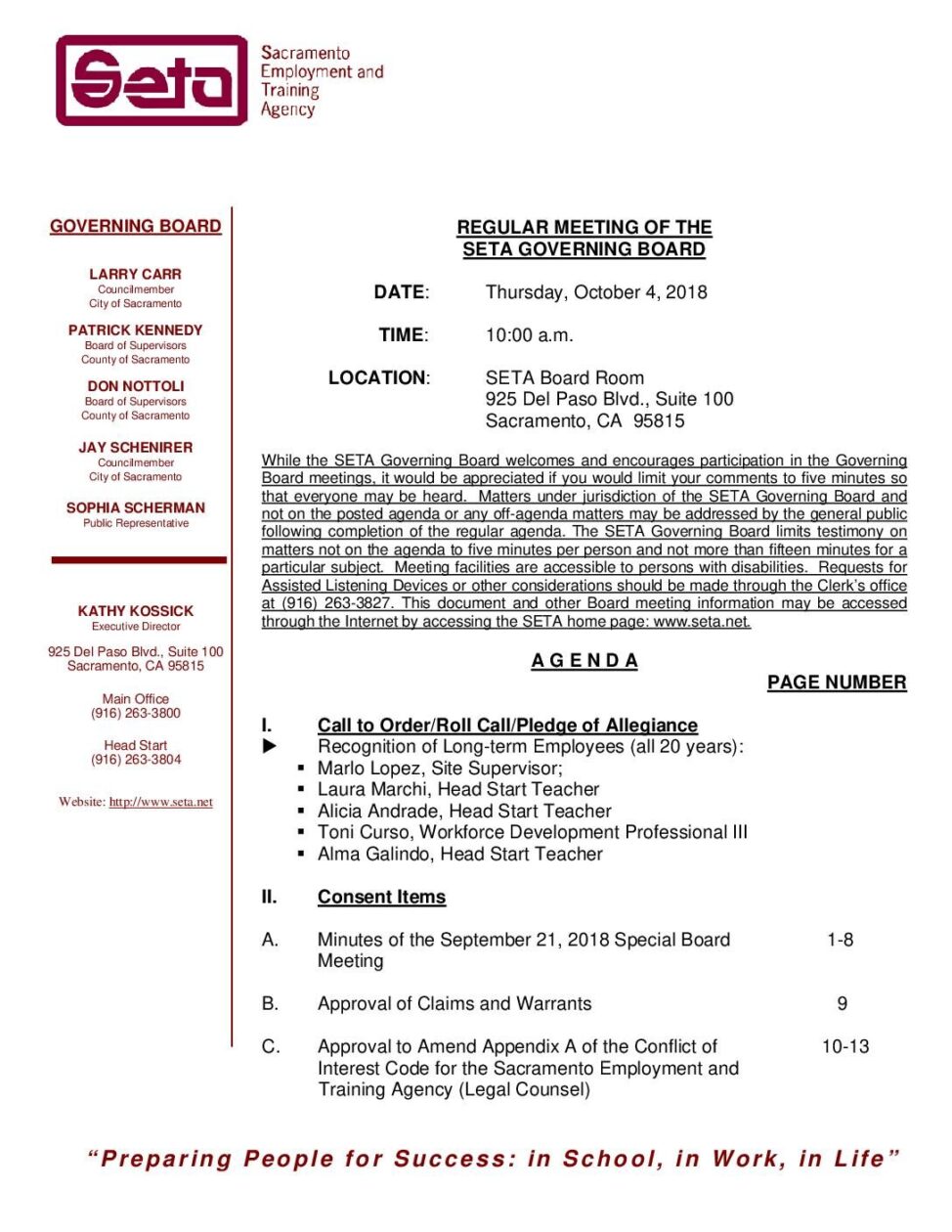 Regular SETA Governing Board 10/4/18