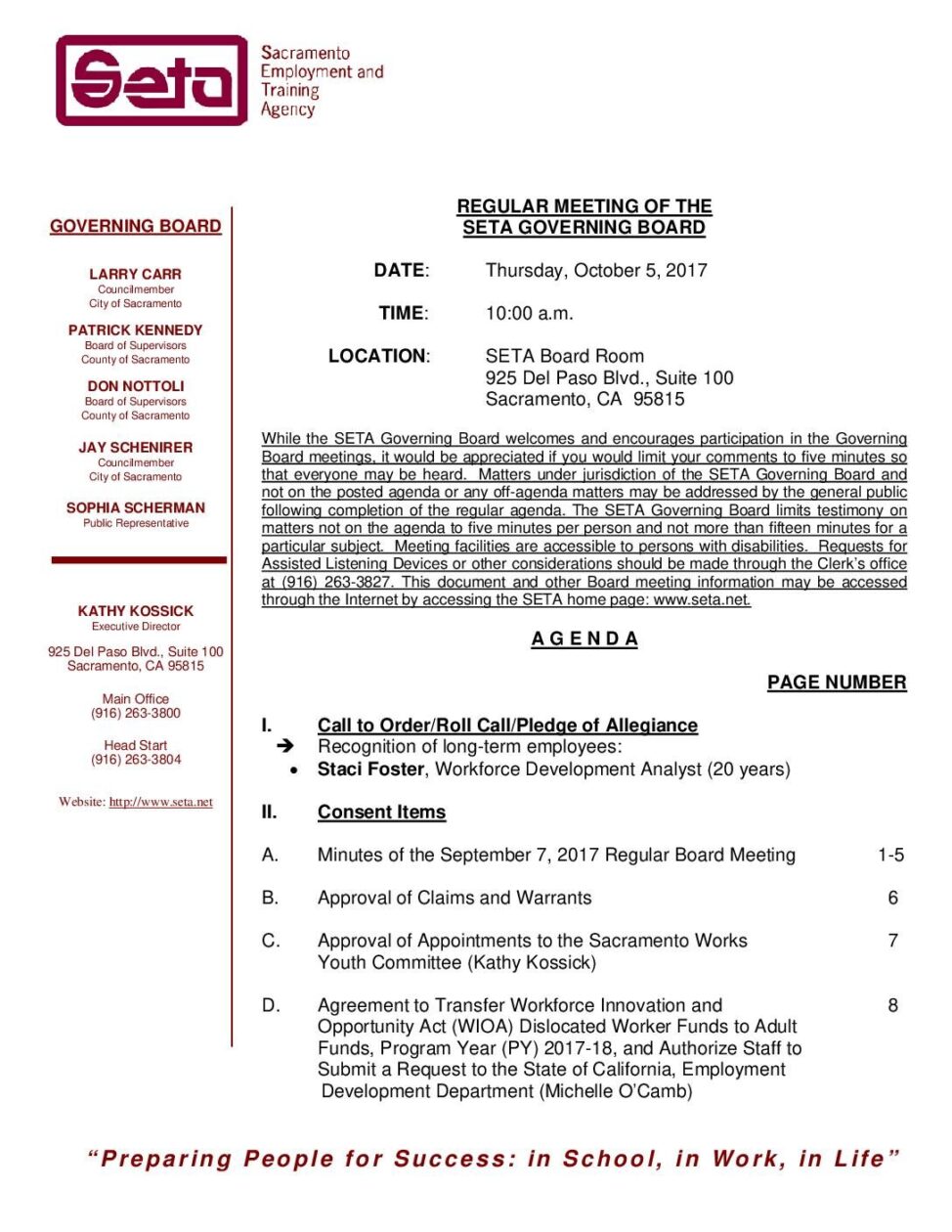 Regular SETA Governing Board 10/5/17