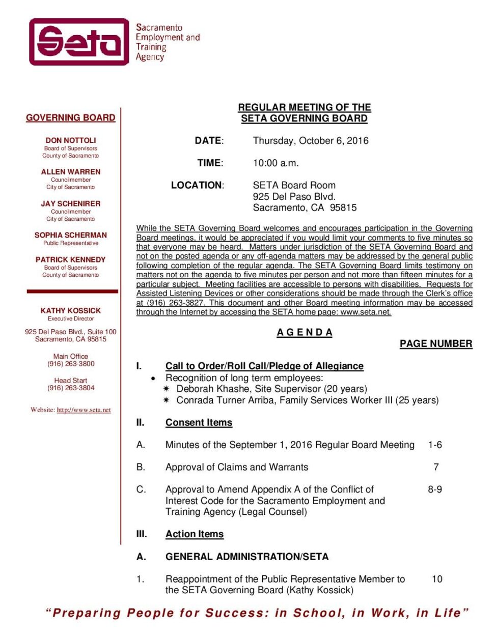 Regular SETA Governing Board 10/6/16
