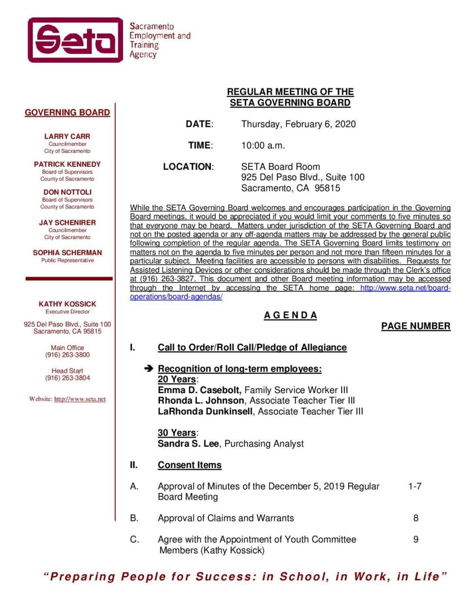 Regular SETA Governing Board 2/6/2020