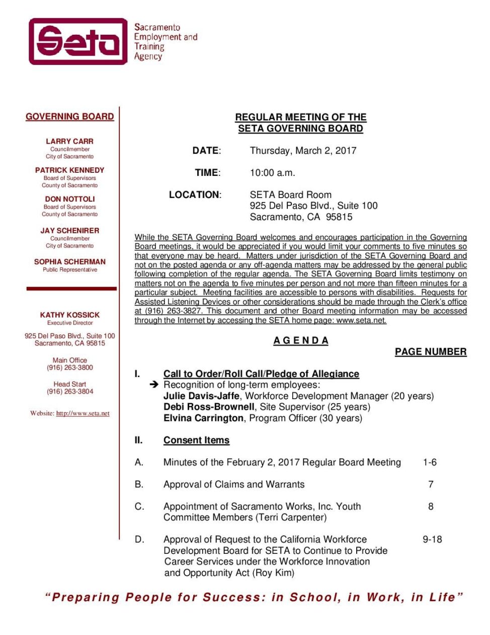 Regular SETA Governing Board 3/2/17