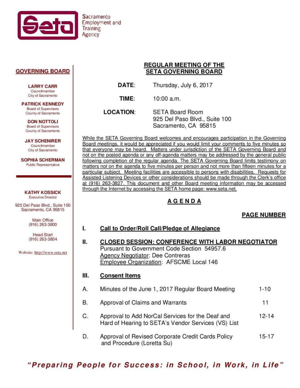 Regular SETA Governing Board 7/6/17