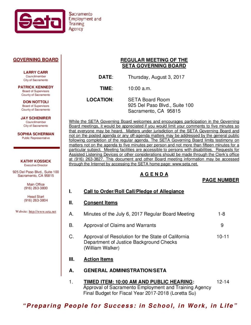 Regular SETA Governing Board 8/3/17