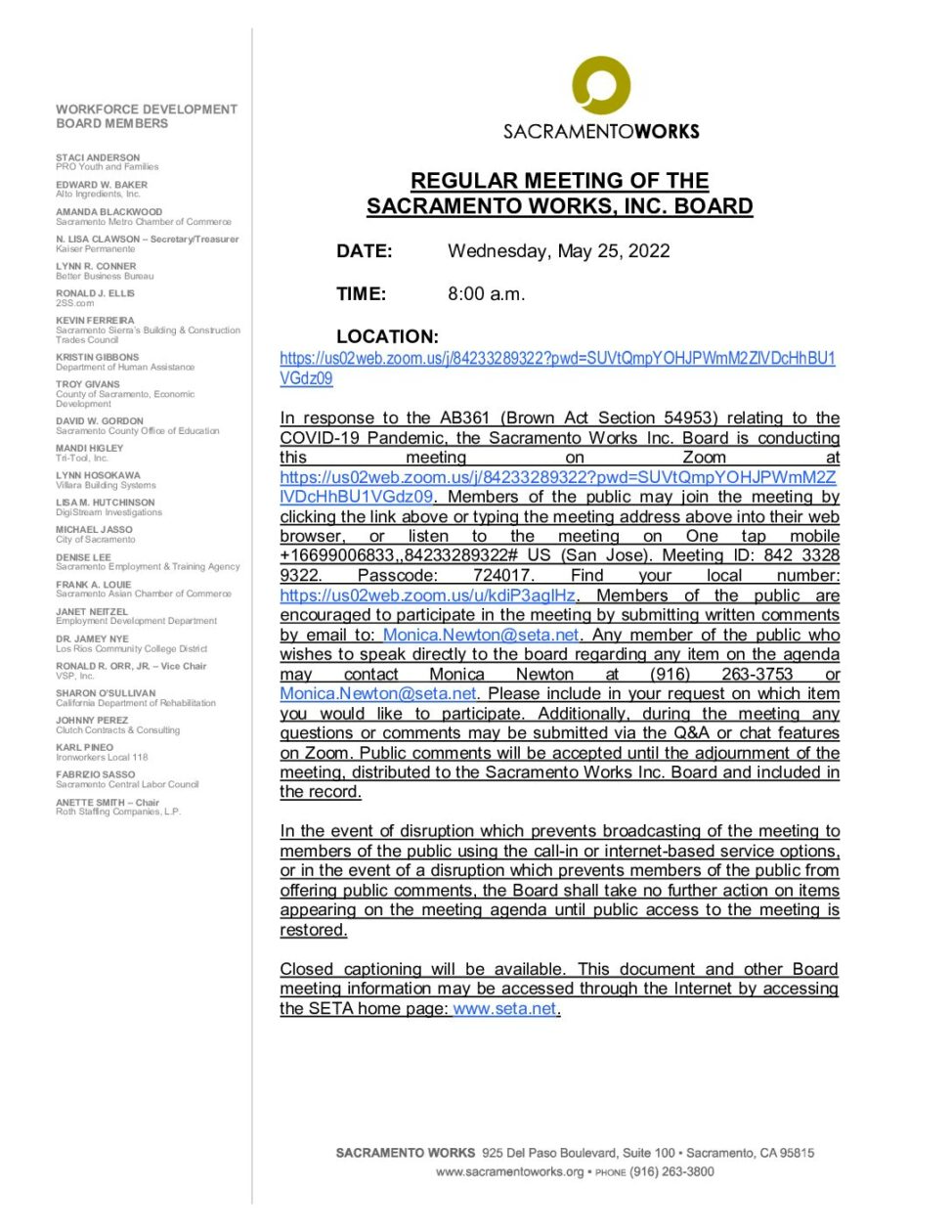 Sacramento Works Board 05/25/2022