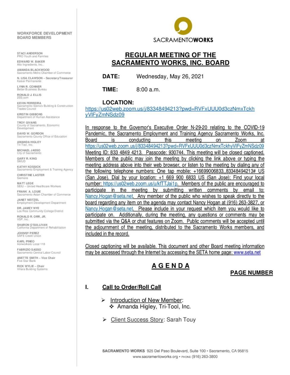 Sacramento Works Board 5/26/2021