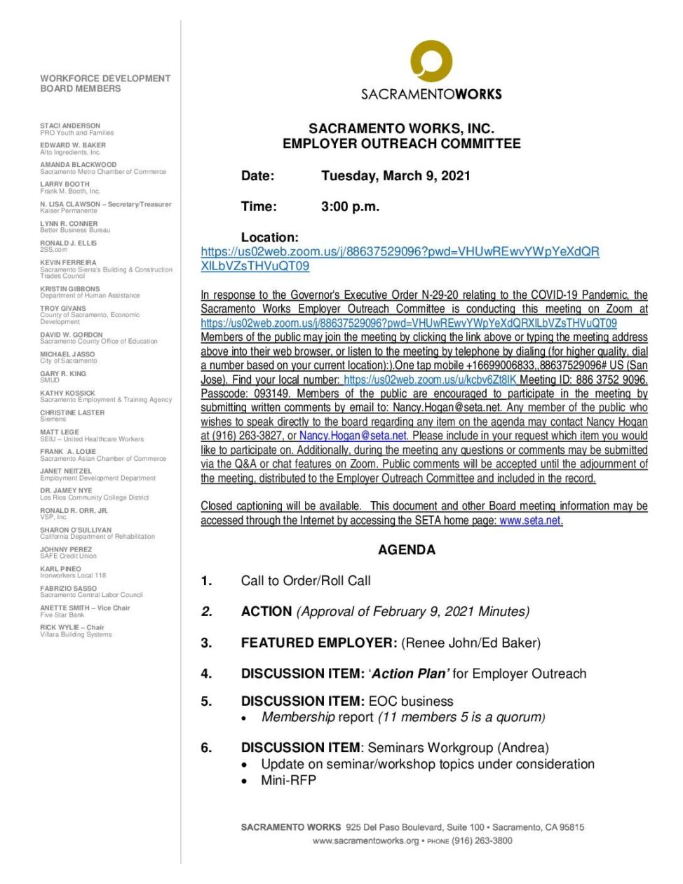 Sacramento Works Employer Outreach Committee 03/09/2021
