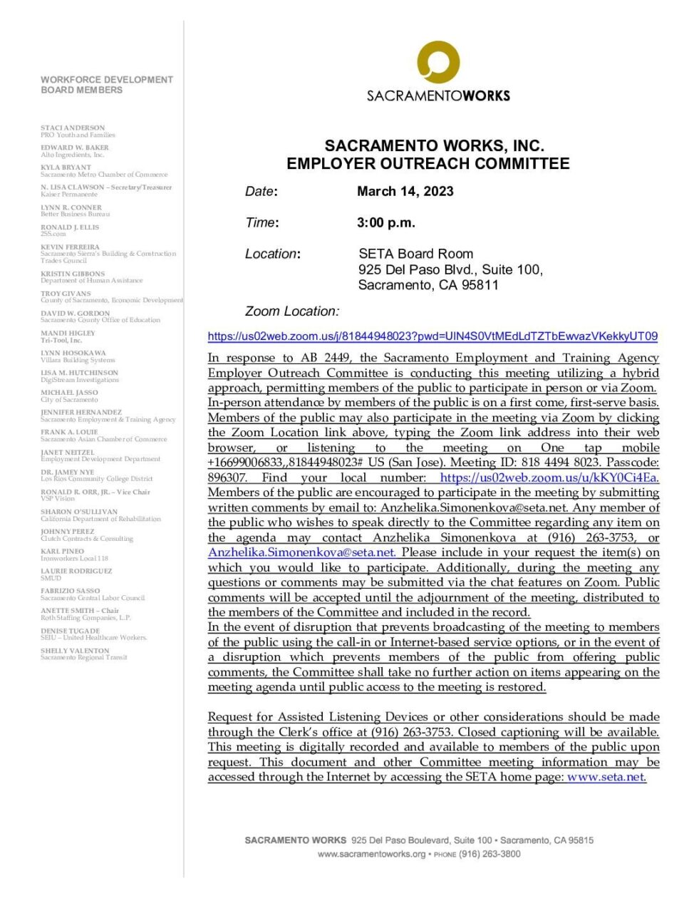 Sacramento Works Employer Outreach Committee 03/14/2023