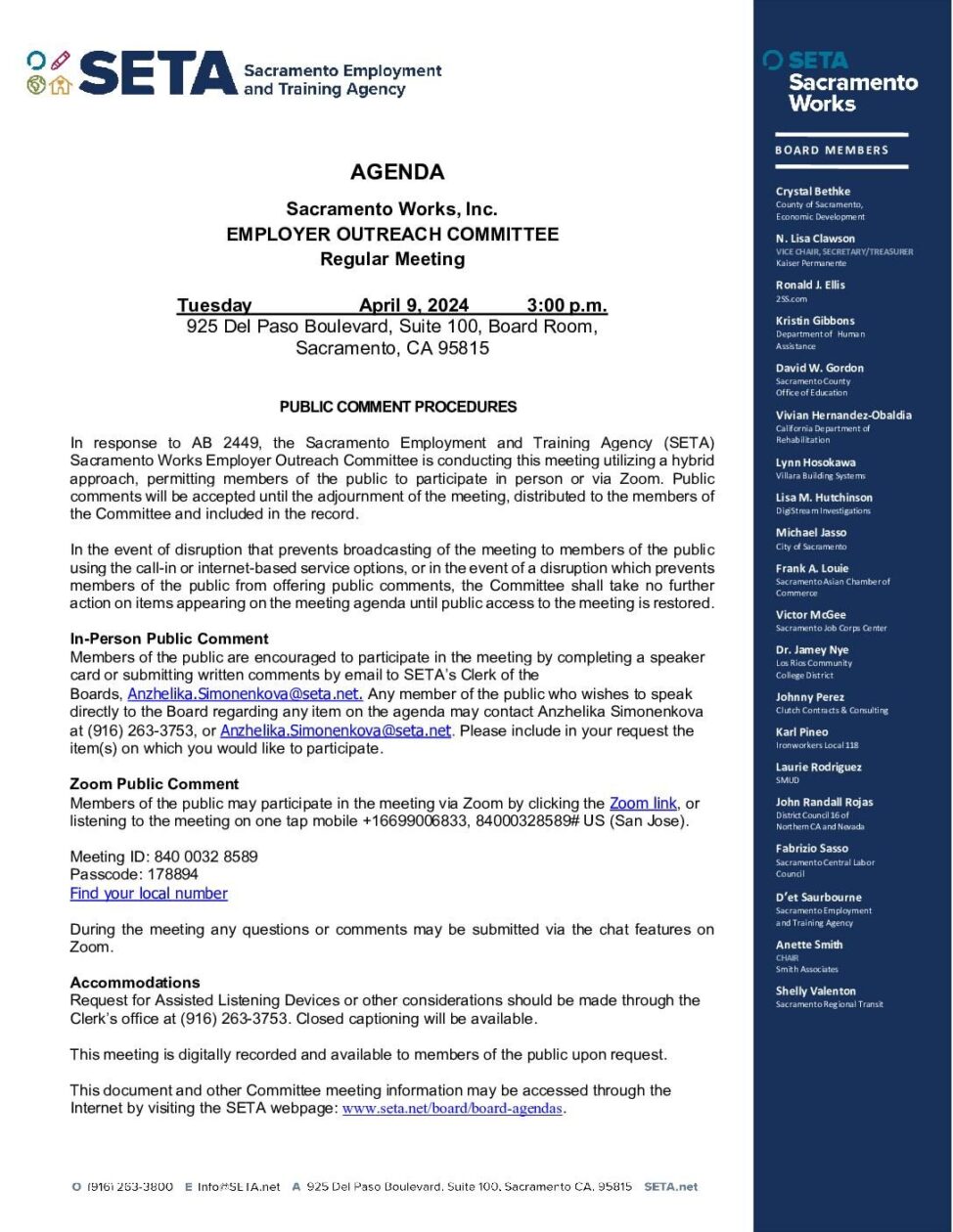 Sacramento Works Employer Outreach Committee 04/09/2024