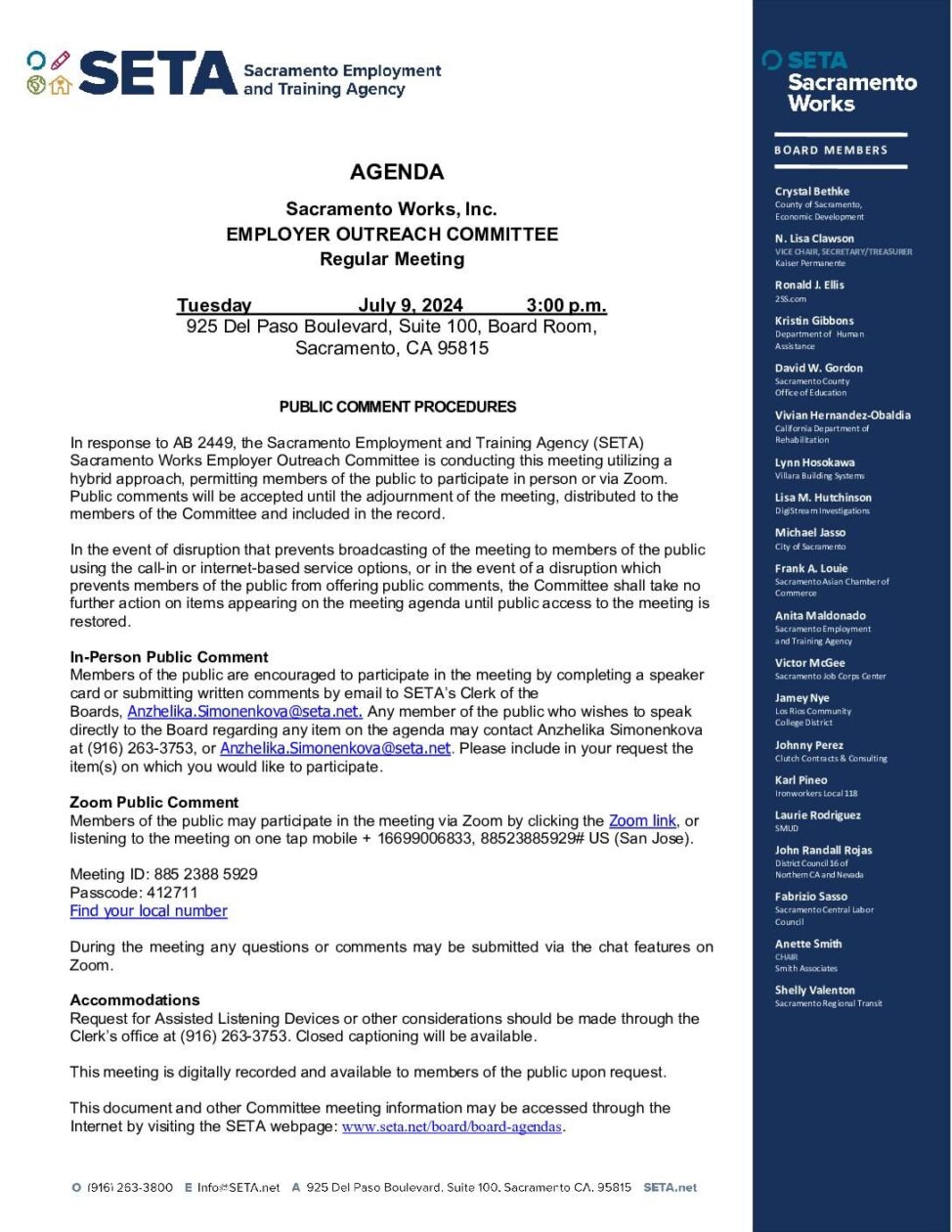 Sacramento Works Employer Outreach Committee 07/09/2024
