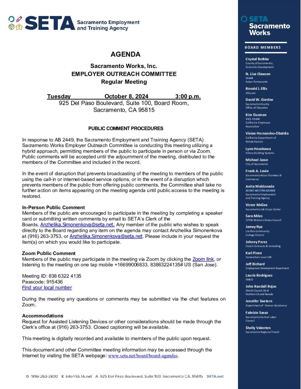Sacramento Works Employer Outreach Committee 10/08/2024