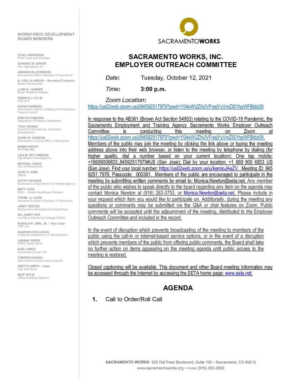 Sacramento Works Employer Outreach Committee 10/12/2021