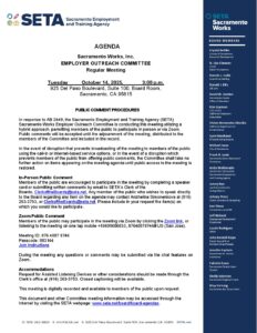 Sacramento Works Employer Outreach Committee 10/14/2025