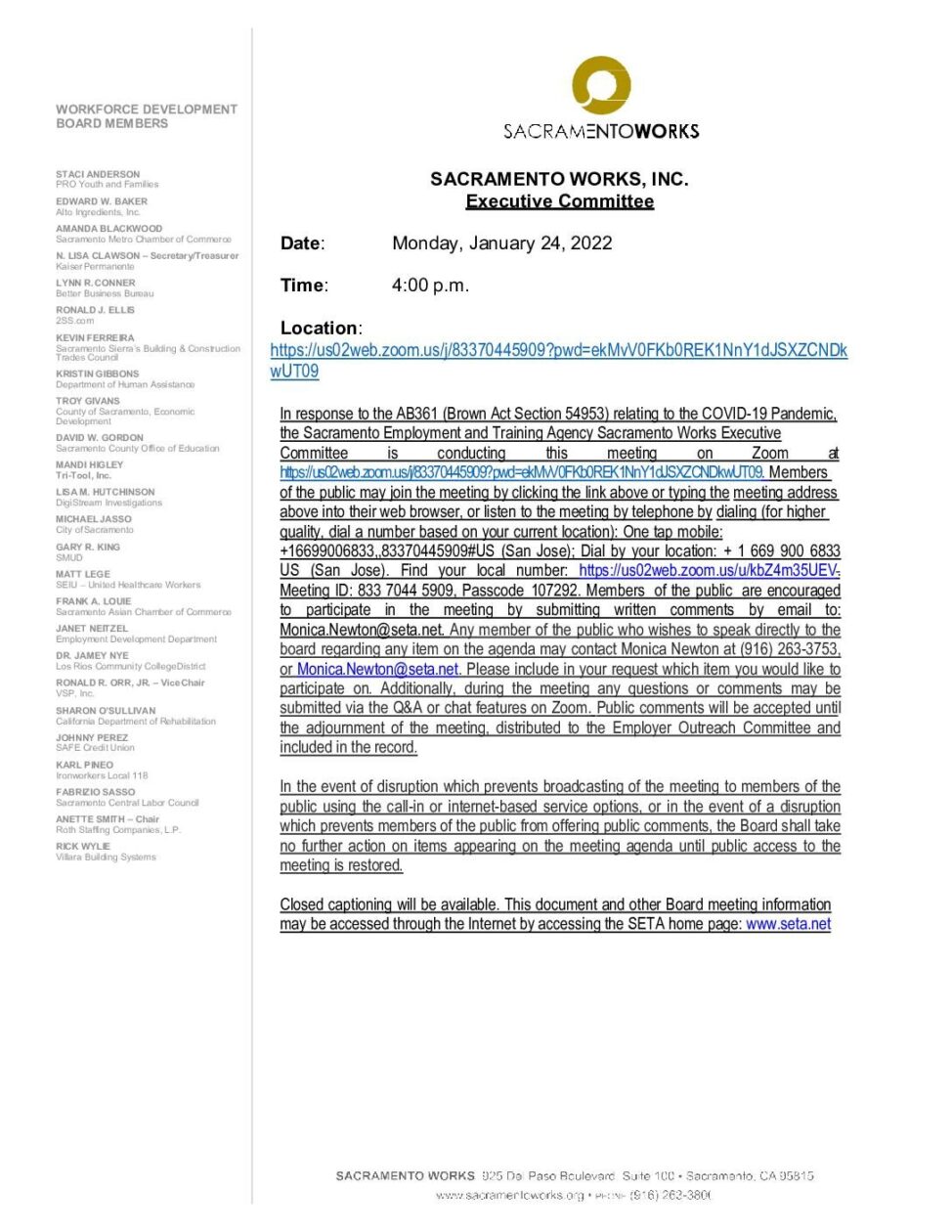 Sacramento Works Executive Committee 01/24/2022