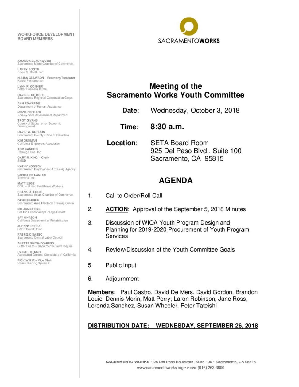 Sacramento Works Youth Committee 10/3/18