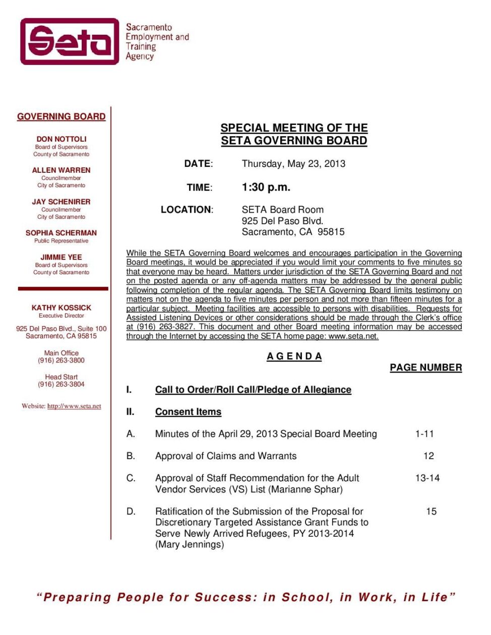 Special Governing Board 5/23/13