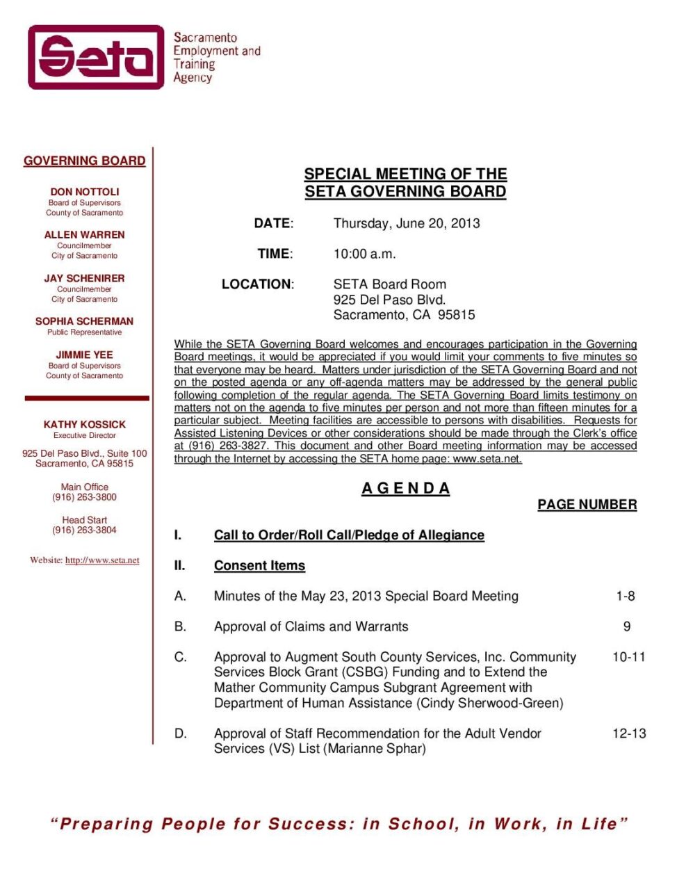Special Governing Board 6/20/13