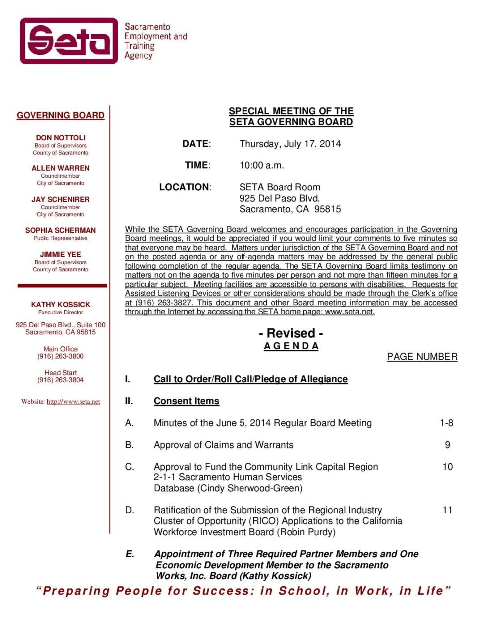 Special Governing Board 7/17/14 (revised)