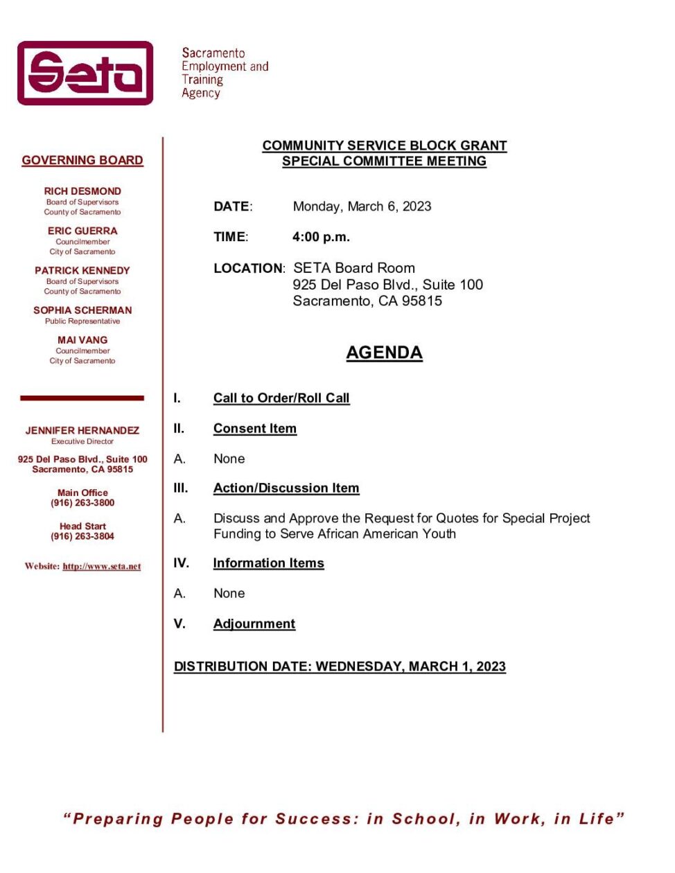 Special Meeting of the Community Service Block Grant Special Committee 03/06/2023