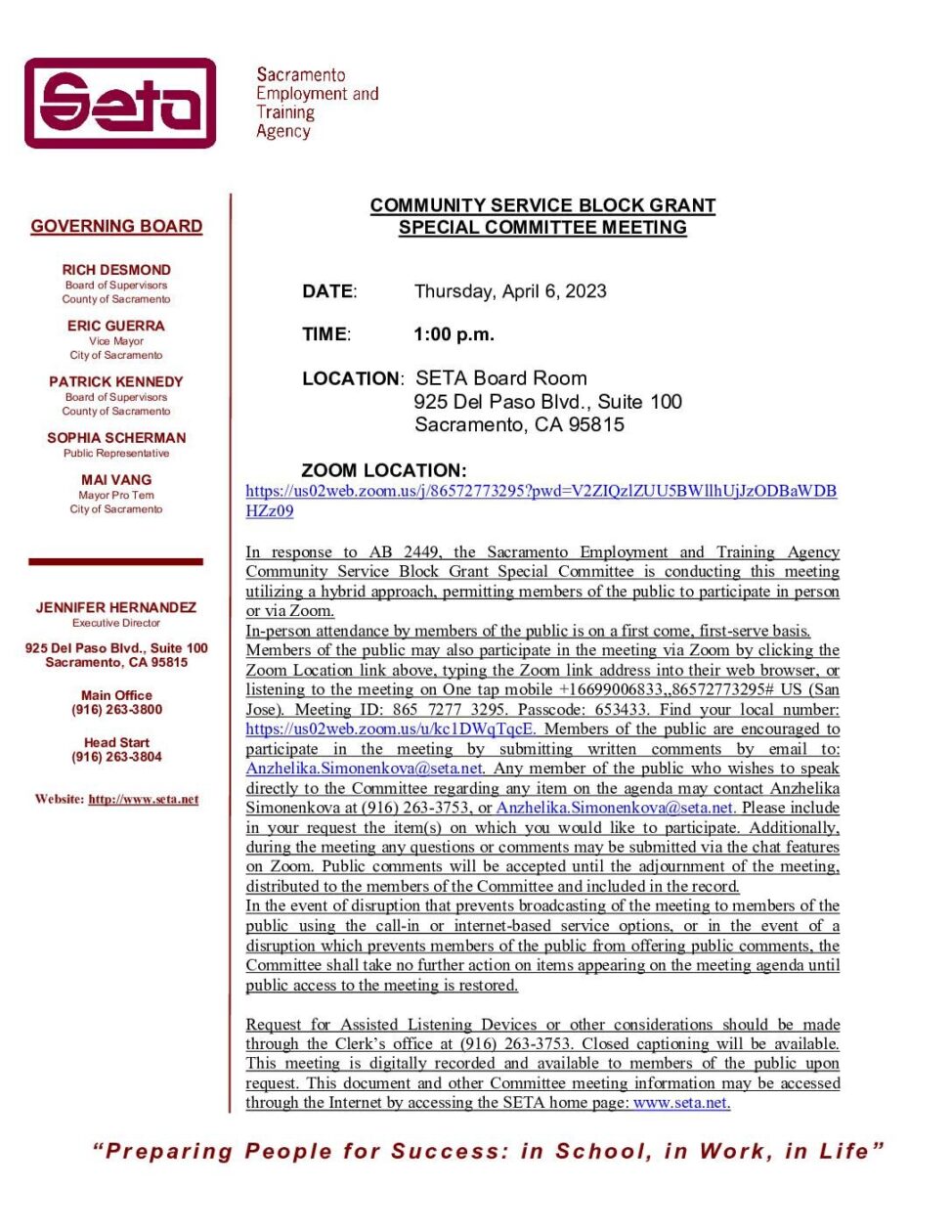 Special Meeting of the Community Service Block Grant Special Committee 04/05/2023