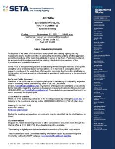 Special Meeting of the Sacramento Works Youth Committee 11/21/2025