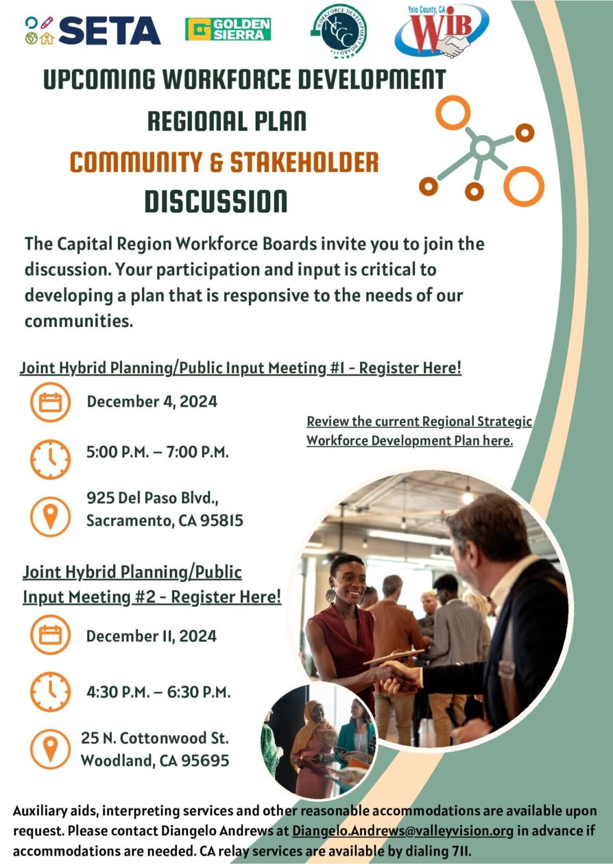 WIOA / Notice of Public Input Meeting for Regional and Local Plans
